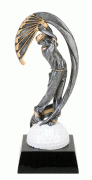 The picture of the trophy on-line did not do it justice. It is a detailed, portrayal of a female lacrosse player accented by a glossy yellow lacrosse ball. The trophy itself is substantial. Received within a week of ordering. Engraving done well.