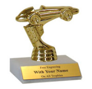 The trophy came and it was just what I wanted for my Grandson who won Best in Show for his pinewood derby car. He loved it.
